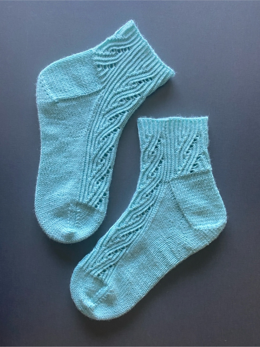 Når foråret spirer, får jeg ofte lyst til både at strikke og bruge strømper med hulmønster. For nylig strikkede jeg årets første par. Og jeg tog dem på for første gang i går. Jeg elsker mine nye strømper 🥰